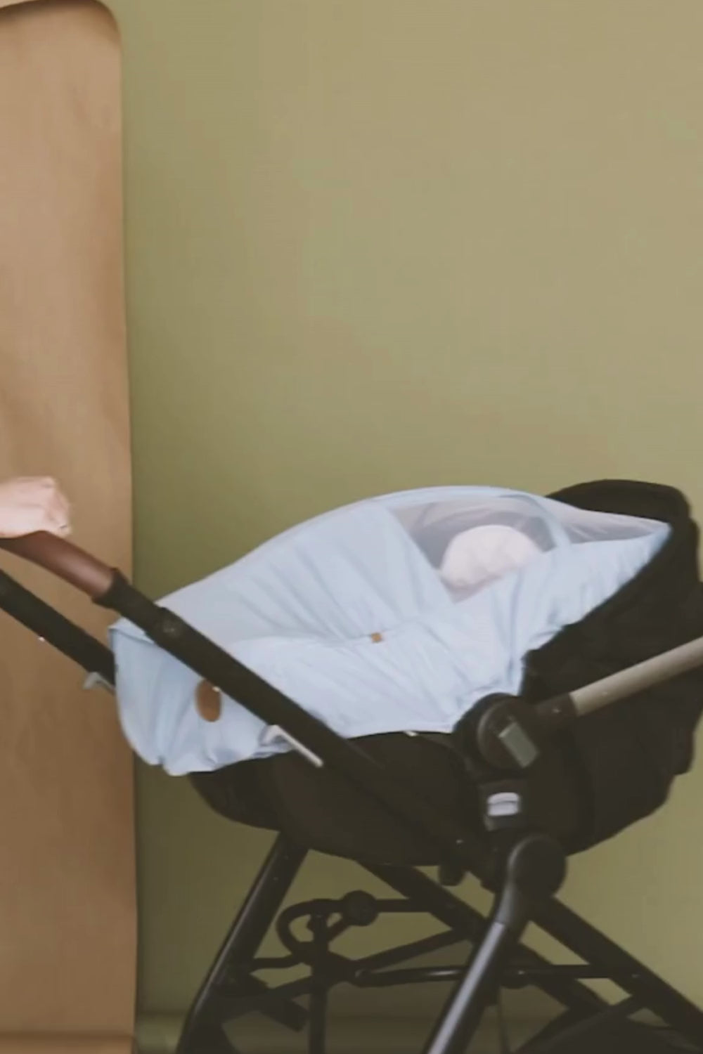 Its water-resistant fabric repels light rain while maintaining good airflow around baby, preventing any discomfort from heat buildup under the cover.